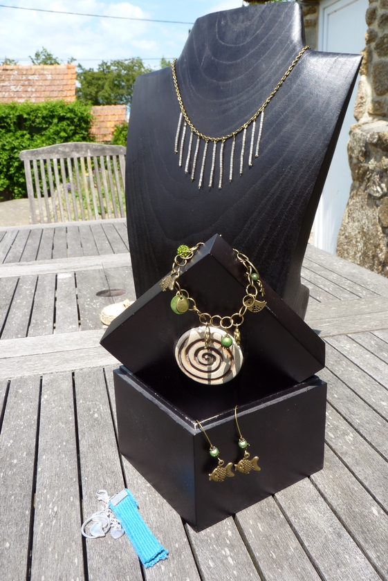 collier, bracelet, boucles d'oreilles et porte-clés.